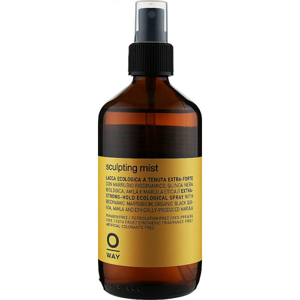 Еко-спрей сильної фіксації із серії Oway дозволяє створювати чіткі структуровані прядки без зайвого їх обважнення. Oway Sculpting Mist - засіб, що складається з екологічно чистих компонентів. Фіксація, якої можна досягти за його допомогою, - сильна, але досить гнучка. Вам неодмінно сподобається ефект від застосування цього спрею.